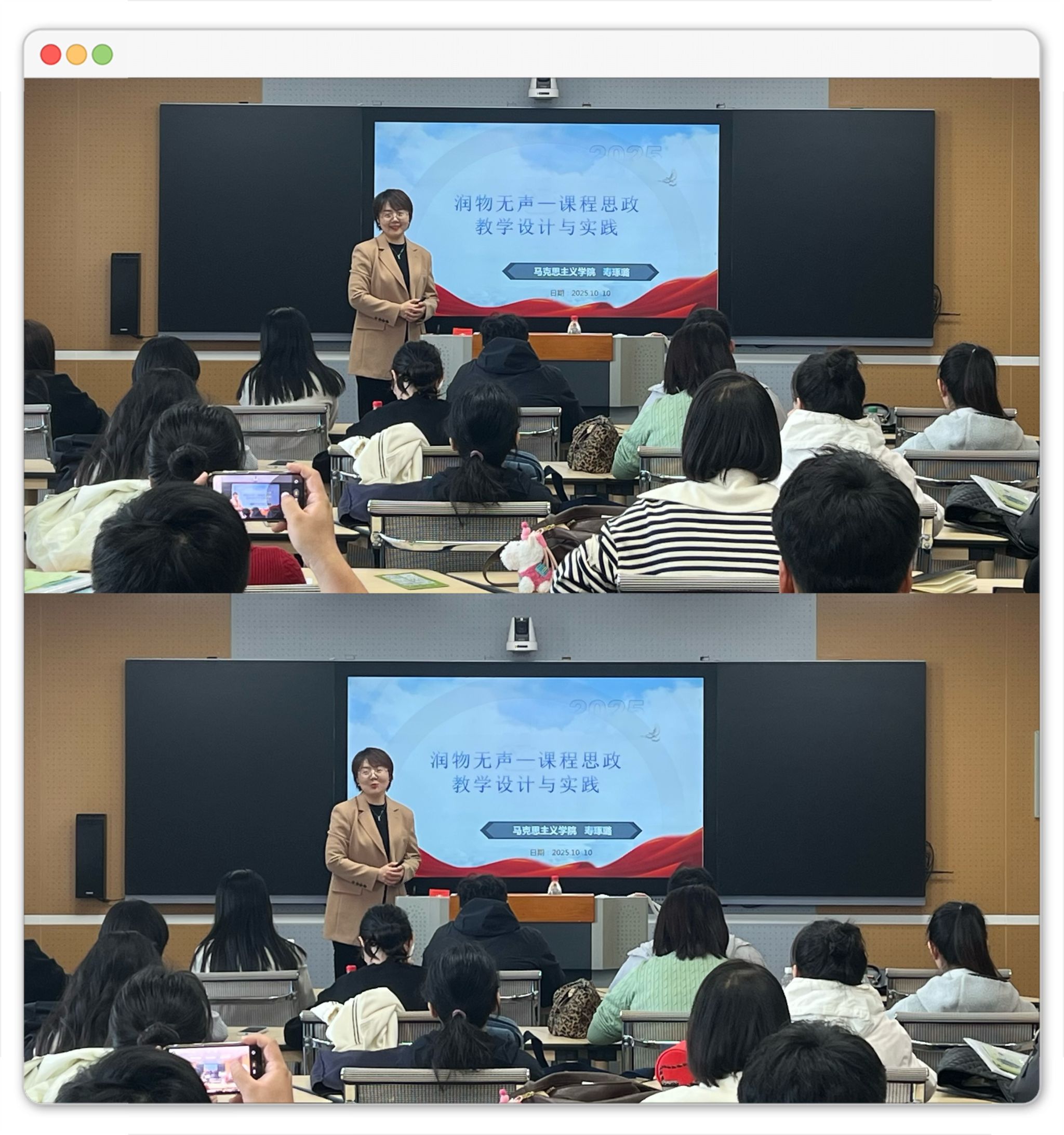 为助力新入职教师更好开展教学工作,推进课程思政建设,10月10日下午教务处邀请我校马克思主义学院专职教师寿琢璐在综1413智慧教室为新入职教师作“润物无声——课程思政教学设计与实践”专题培训。