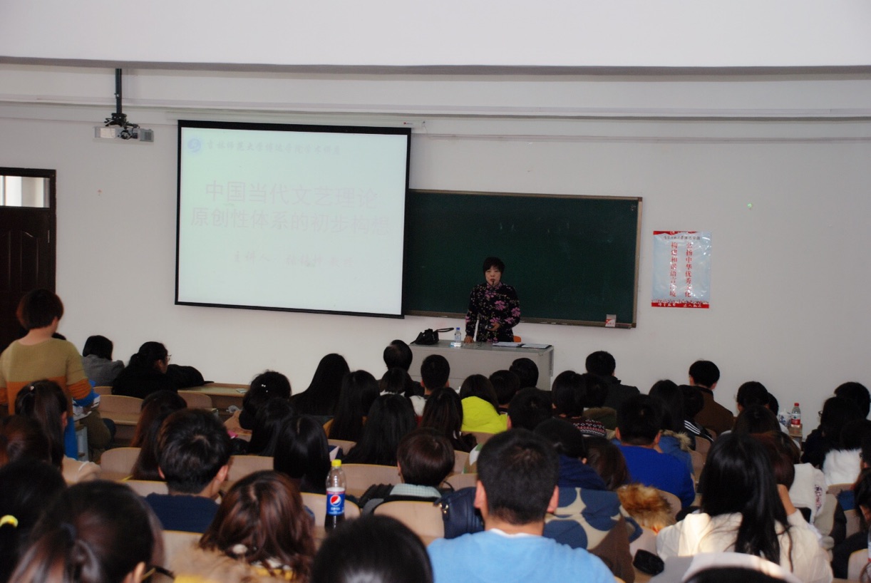 11月19日下午,吉林大学文学院文艺学专业博士生导师、中国文化研究所所长张锡坤教授莅临我院,在3221教室作了专题讲座,题为“中国当代文艺理论原创性体系的初步构想”。院长张笑庸教授以及中文系师生200余人听取了该讲座,讲座由我院科研处处长侯海荣主持。