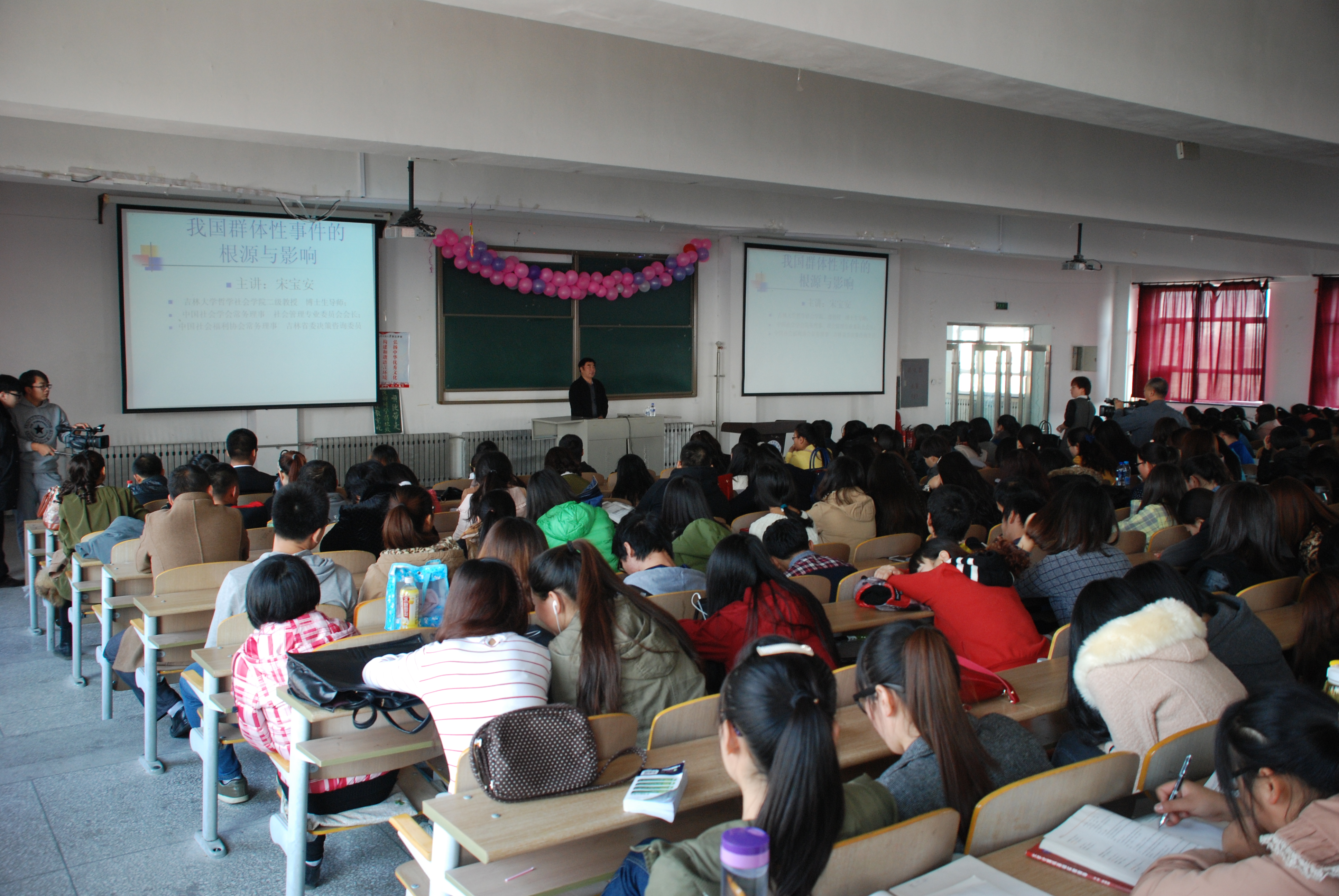 10月22日下午,国家社科基金重大项目首席专家、吉林省资深高级专家、吉林大学首批匡亚明特聘教授、博士生导师宋宝安教授莅临我院,在3601教室作了专题讲座,题为“我国群体性事件的根源与影响”。我院师生约700人听取了该讲座,讲座由科研处处长侯海荣主持。