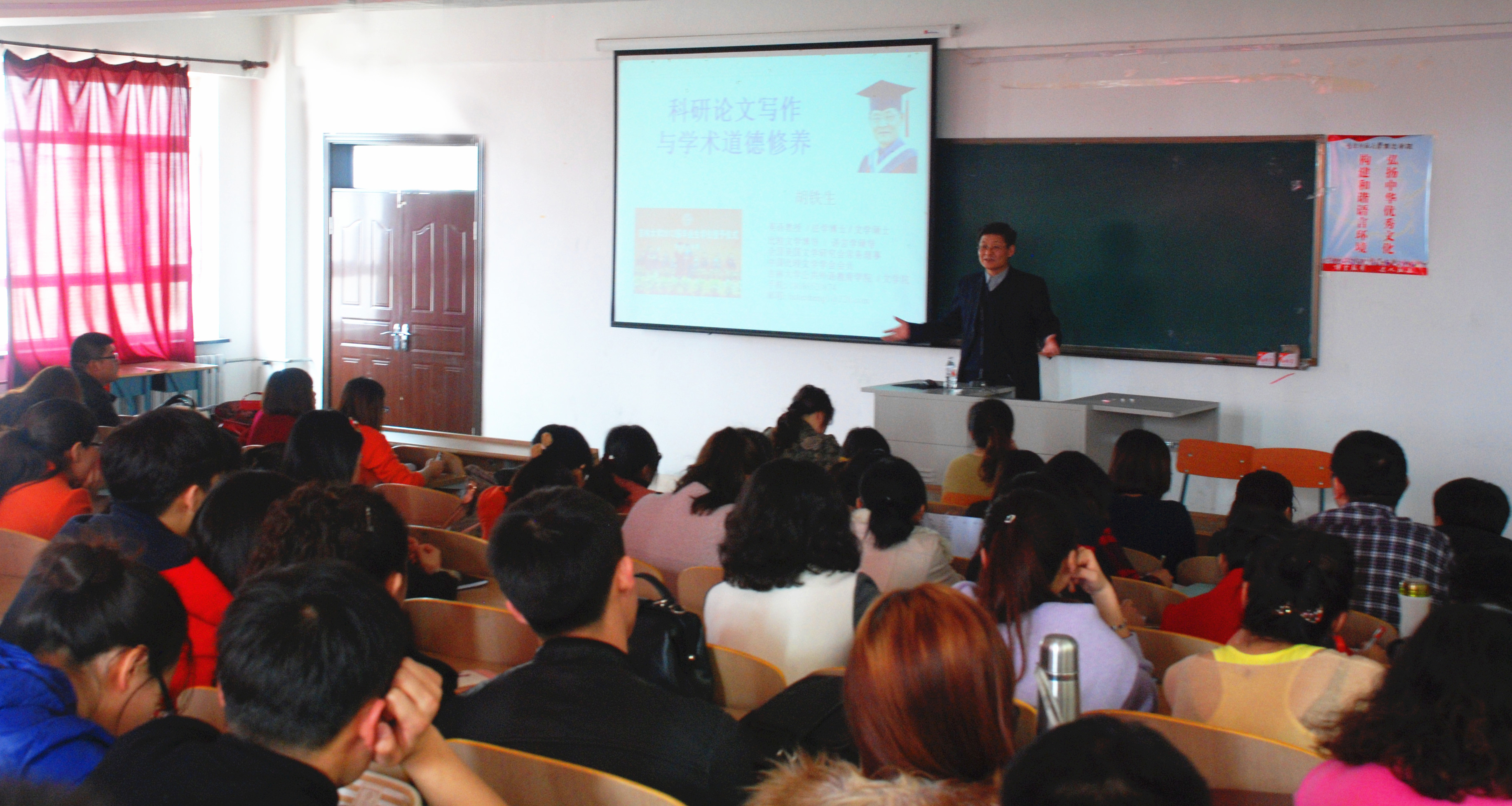 在一个半小时的讲座中,胡教授围绕科研的意义、撰写学术论文的基本步骤、论文发表的技巧规律以及学术不端行为的“盗窃”现象,进行了深入浅出又画龙点睛的阐述,并结合自己多年的科研经验,提出了一些实用性和操作性强的见解。
