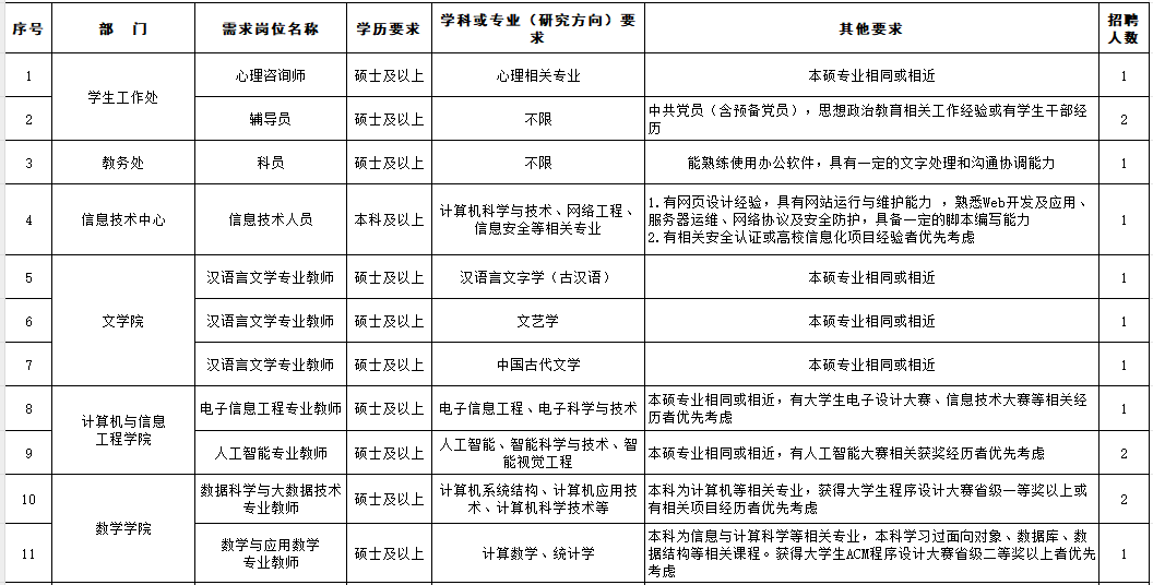 1.我校所有招聘活动均由校人事处统一组织实施,从未授权任何第三方机构或个人开展招聘相关工作。凡声称与我校合作的社会机构或个人招聘行为均属虚假信息。