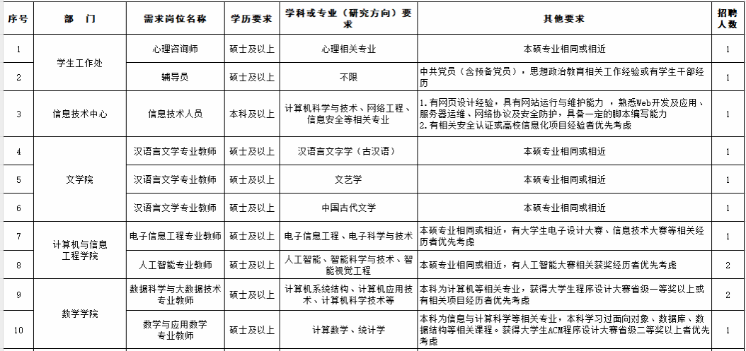 1.我校所有招聘活动均由校人事处统一组织实施,从未授权任何第三方机构或个人开展招聘相关工作。凡声称与我校合作的社会机构或个人招聘行为均属虚假信息。