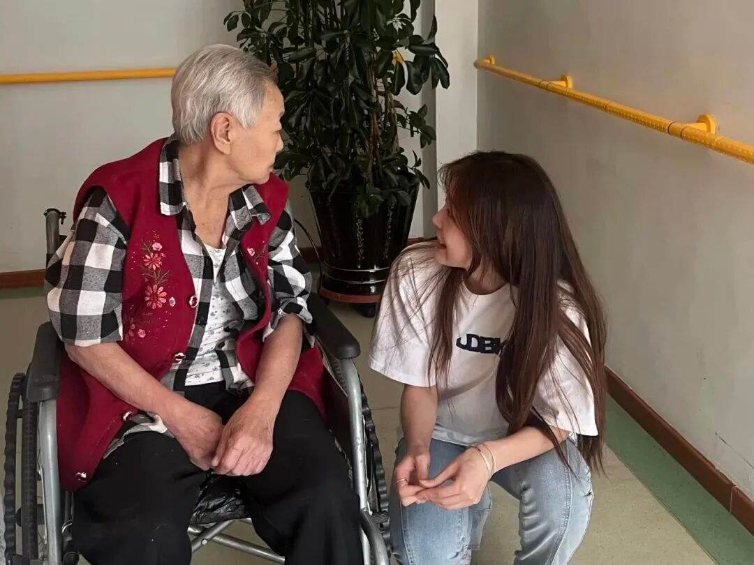 同学围坐在老人身边,耐心倾听长辈们讲述过往经历与生活故事,细致询问饮食起居与身体状况,用陪伴驱散孤独,用话语传递关怀。