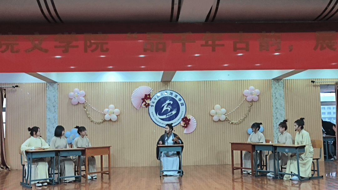 由吉林师范大学博达学院文学院社团联合会、新媒体宣传中心、青年志愿者协会共同举办的“品千年古韵,展昂霄风华”传统文化节于2024年5月24日18:30在二教六楼报告厅隆重举办。莅临本次活动的嘉宾有文学院辅导员贾金媛老师、辅导员刘尧老师、专职教师谭博泽老师、专职教师李书放老师、专职教师高琳老师以及青新团学联的主席部长们。