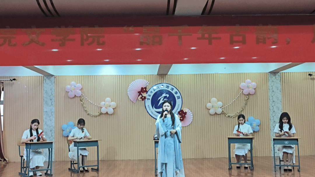 青春,不是柔情似水,而是心怀家国;不在卧榻之席,应处山河之间。青年们用自己脚踏实地的行动向世界证明,不婺于虚声、不陷于佛系方是炯炯明烛,萤烛尚能补微,尘埃亦可增辉,但尽绵薄之力,不负韶华之景;但耀爱国之烛,不负盛世之春。朗诵《青春志愿梦,悠悠古韵情》用掷地有声的铿锵话语引起了青年的爱国热情。