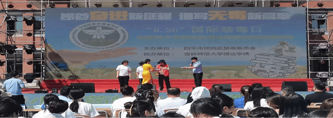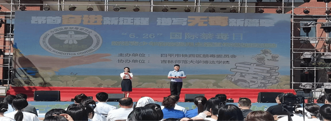 当今社会,毒品已经成为危害人类健康和影响社会稳定的隐形杀手。禁毒,不仅是一场关乎个人命运的战斗,更是一场全社会必须共同参与的重要任务。吉林师范大学博达学院在6月26日下午两点在综合楼门前举办“昂首奋进新征程,谱写无毒新篇章”禁毒宣传活动。