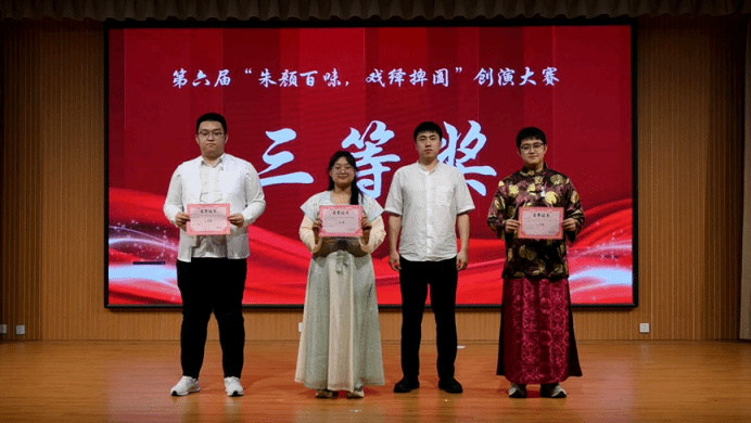 这次创演大赛能够圆满结束不仅是各演员齐心协力,不断磨合的一个结果,也同样是班级内部凝聚力强的一个象征。学生们以极大的耐心与动力代入一个个文学作品中有血有肉的角色当中,以语言、动作与编排来体验另一种别样的人生。此次“朱颜百味,戏绎捭阖”创演大赛为同学们提供了一个展现自我青春活力的舞台,希望同学们在今后中能将这份热情投入大学生活之中,演绎自我的非凡人生!