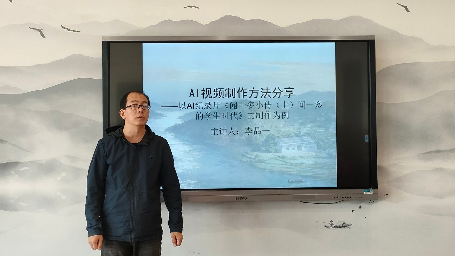 李品一老师分享AI视频制作经验时指出,创作理念应坚持“人机共创”,以AI为伙伴还原历史真实,《闻一多小传(上)》便聚焦其学生时代,兼顾史实与叙事张力。制作流程分三步:先整理史料素材,生成文案。然后优化提示词生成场景,进行音频制作。最后是剪辑配乐,进行画面制作。推广上采用精准策略,依托社交媒体发布片段,提升传播效能。