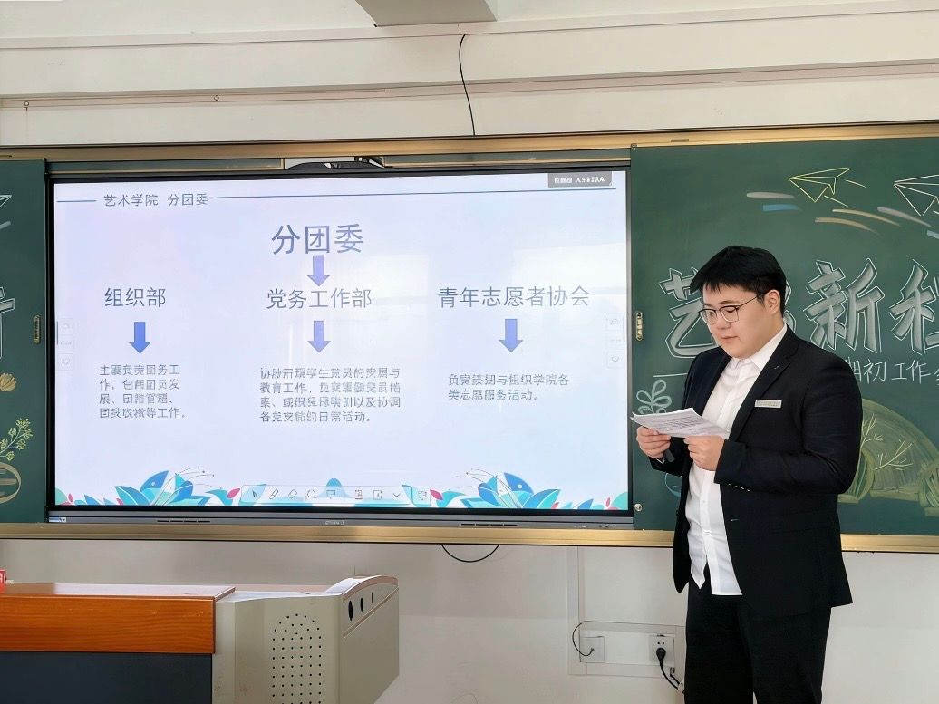 为统一思想、明确方向、推动新学期团学工作高质量开展,2025年3月18日下午15:00,艺术学院在综合楼1316教室召开2025-2026学年度第二学期团学联期初工作会议。学工办副主任张维老师主持会议,辅导员王占利、李睿琦老师、各学院辅导员以及团学联全体学生干部参加。