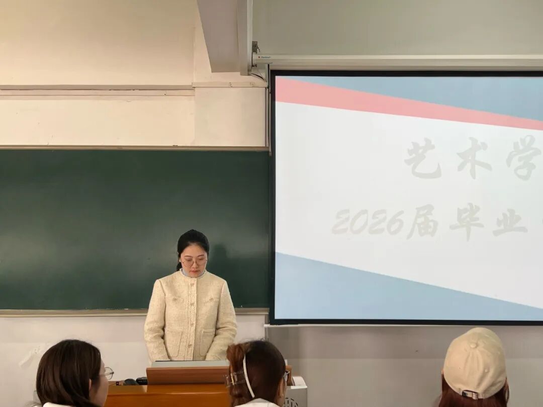 时光不语,静待花开。为确保艺术学院2026届毕业生顺利完成学业、平稳办理离校手续,2026年3月31日召开2026届毕业生年级大会,学工办副主任张维老师,辅导员李睿琦老师及全体2022级学生参会。