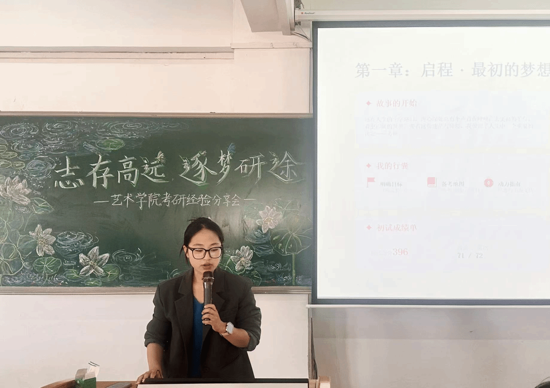 为了营造积极进取、互助共进的学院学风,激励艺术学子在深造道路上坚定信念、明晰方向,吉林师范大学博达学院艺术学院于2026年4月22日在1501教室成功举办“志存高远,逐梦研途”考研经验分享会。辅导员王占利老师、李睿琦老师及2023级学生参加会议。本次会议邀请在考研中取得优异成绩的学长学姐,面向有意深造的同学分享备考心得、实战策略与心路历程,现场交流热烈,氛围融洽。